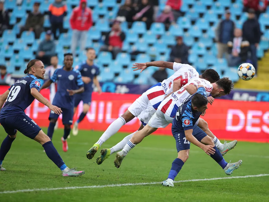 Robert Cornel Neacsu si Omar Pasagic in meciul de fotbal dintre SC Otelul Galati si FC Metaloglobus Bucuresti, contand pentru Superliga Superbet, desfasurat pe Stadionul Otelul din Galati, luni 6 octombrie 2025. © FOTO:Sorin Pana/SPORT PICTURES