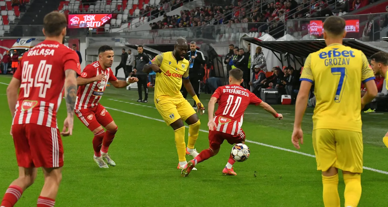 Tiemoko Ismael Diomande și Adnan Aganovic, Marius Ștefănescu în meciul de fotbal dintre FC SEPSI OSK SFÂNTU GHEORGHE și ACS PETROLUL 52 PLOIEȘTI, contând pentru SuperLiga Superbet, desfășurat pe Stadionul SEPSI Arena OSK din Sfântu Gheorghe, sâmbătă 04 noiembrie 2023. © FOTO: Bogdan BALAS/SPORT PICTURES