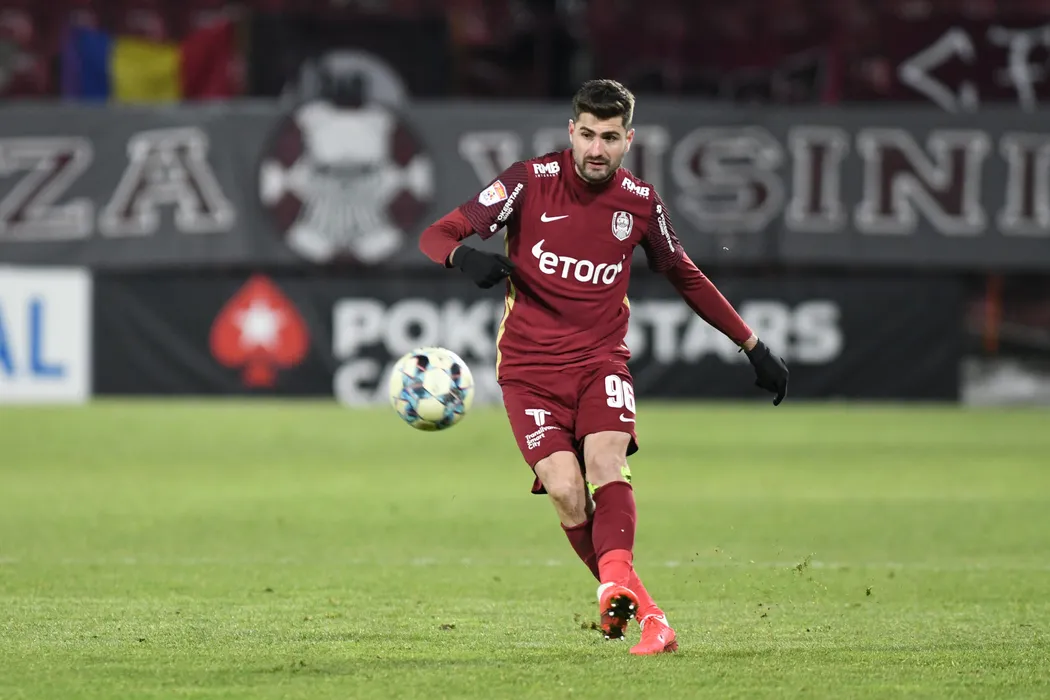 Florin Stefan, de la CFR Cluj, suteaza in timpul meciului de fotbal contra echipei UTA Arad din etapa a XXV- a a Ligii 1, disputat pe stadionul Dr. Constantin Radulescu din Cluj-Napoca, marti, 8 februarie 2022. FLAVIU BUBOI / MEDIAFAX FOTO