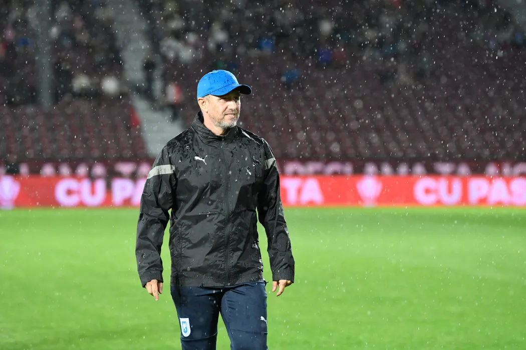 Laurentiu Reghecampf, antrenorul echipei CS Universitatea Craiova, in timpul meciul de fotbal contra formatiei CFR Cluj din etapa a III-a a Superligii, disputat pe stadionul Dr. Constantin Radulescu din Cluj-Napoca, duminica, 30 iulie 2023. FLAVIU BUBOI / MEDIAFAX FOTO