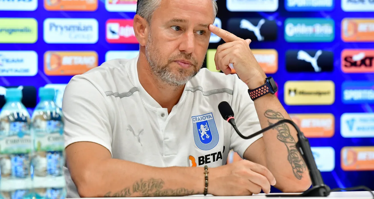 Laurențiu Reghecampf, enervat la culme! Antrenorul Universității Craiova a răbufnit la conferința de presă. „Uite că nu-ți răspund! E bine?”