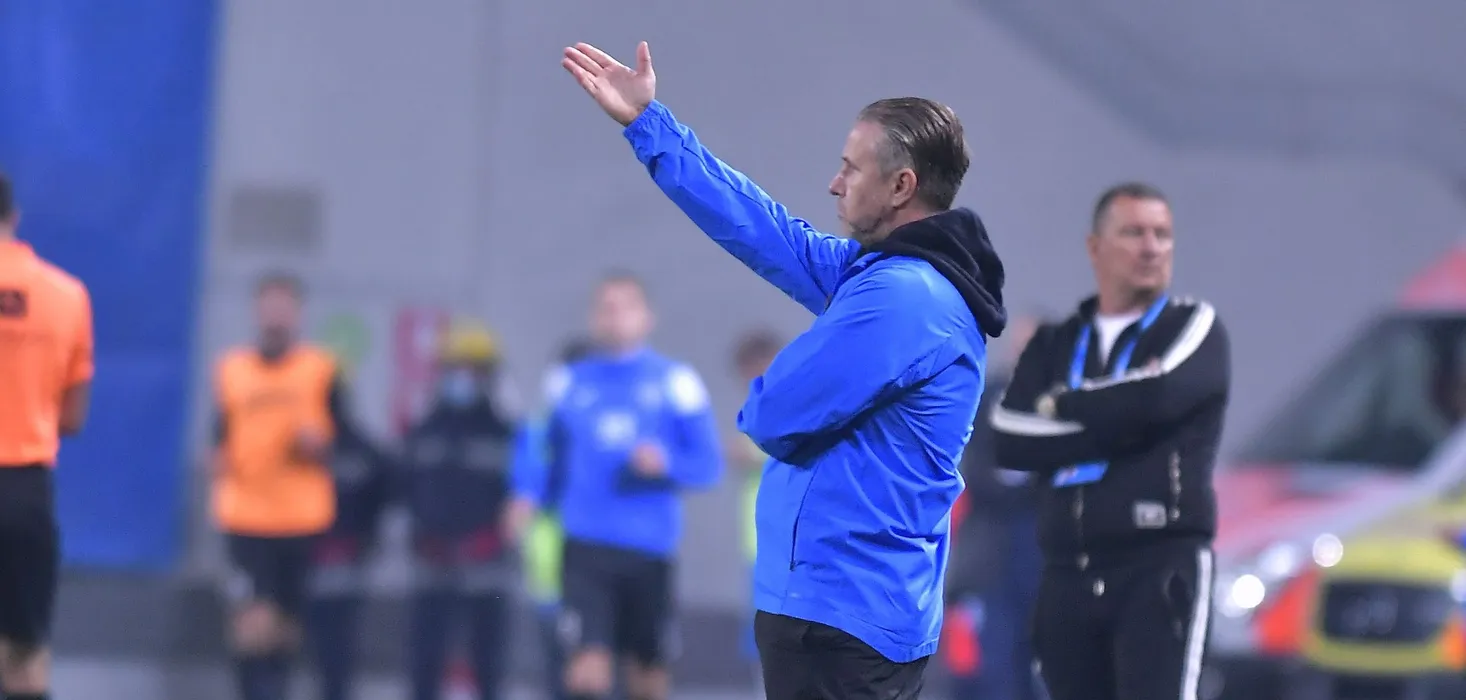 Laurentiu Aurelian Reghecampf reactioneaza in meciul de fotbal dintre Universitatea Craiova si Academica Clinceni, contand pentru Liga 1 Casa Pariurilor, desfasurat pe Stadionul Ion Oblemenco din Craiova, luni 18 octombrie 2021. © FOTO:Razvan Pasarica/SPORT PICTURES