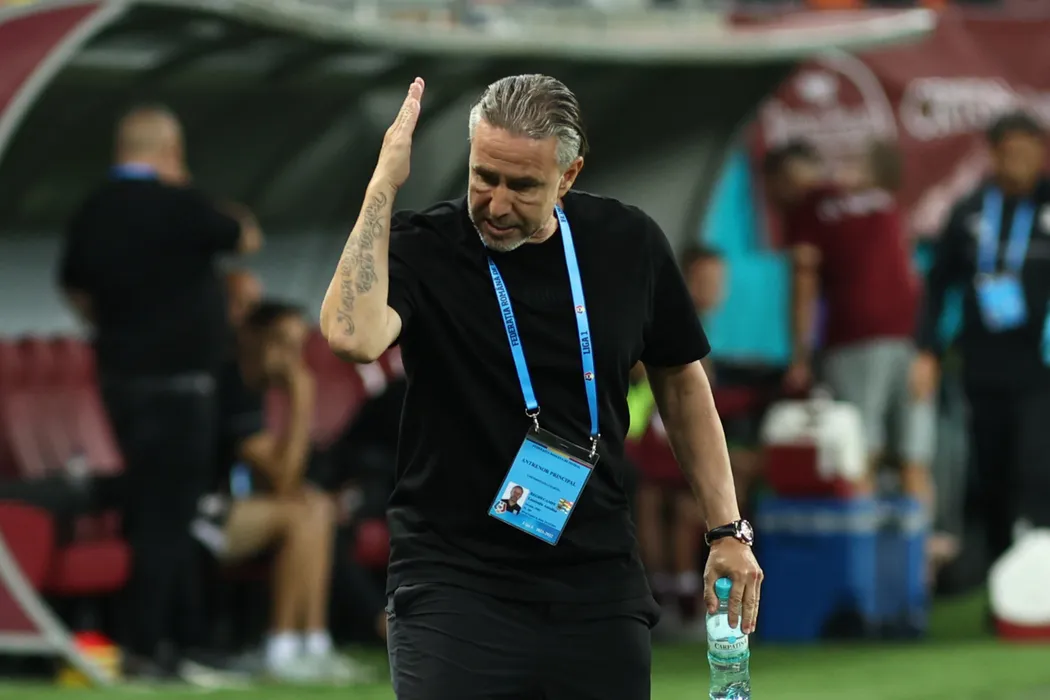Laurentiu Reghecampf, antrenorul echipei CS Universitatea Craiova, urmareste meciul de fotbal contra formatiei Rapid din etapa a VII-a a Ligii 1, disputat pe Arena Nationala din Bucuresti, sambata, 28 august 2021. GEORGE FILIP / MEDIAFAX FOTO