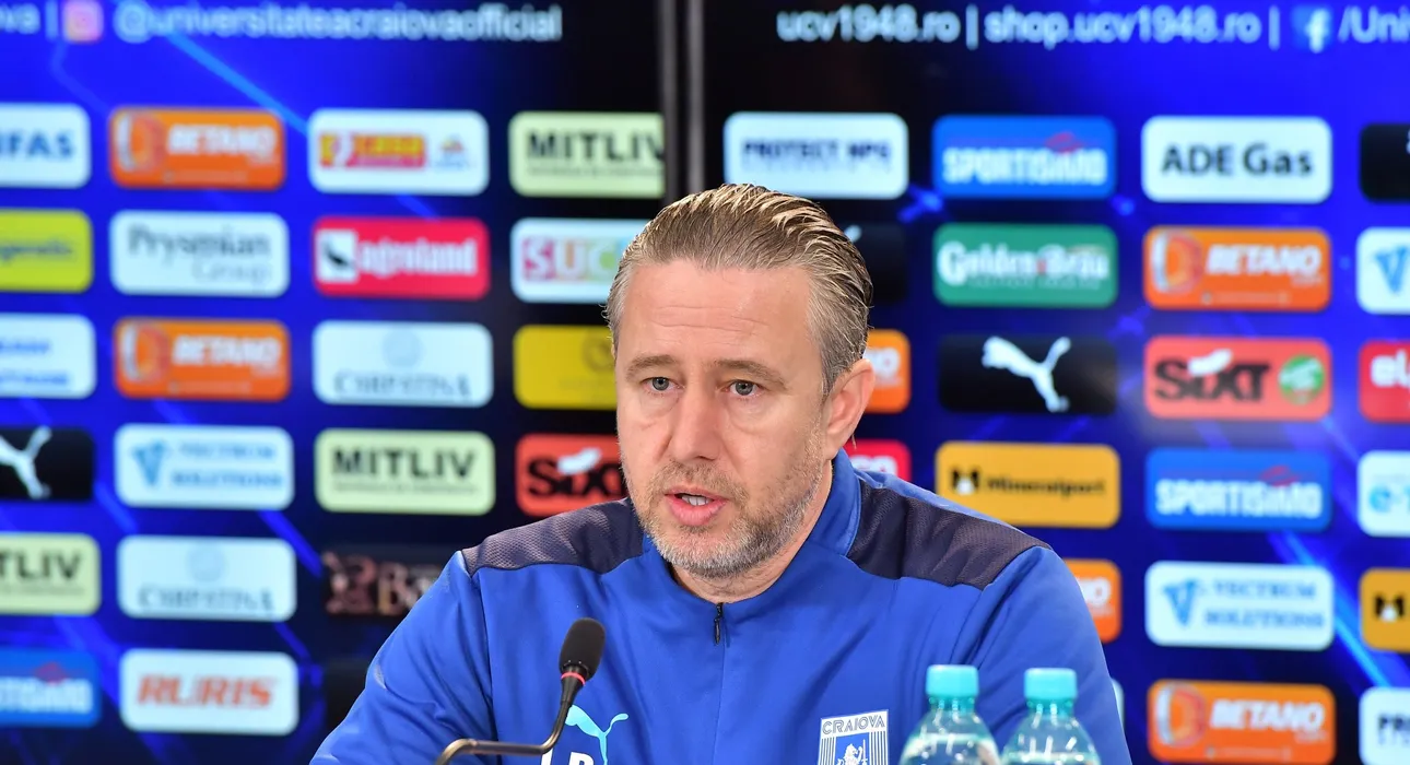 Laurentiu Reghecampf sustine o conferinta de presa la stadionul Ion Oblemenco din Craiova joi 10 martie 2022 . REMUS BADAEA / MEDIAFAX FOTO