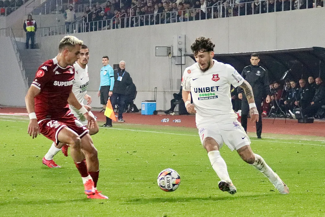 Ianis Ilie Stoica si Cristian Marian Manea in meciul de fotbal dintre AFC Hermannstadt Sibiu si FC Rapid 1923 Bucuresti, contand petru Superliga Superbet, desfasurat pe Stadionul Municipal din Sibiu, sambata 8 martie 2025. © FOTO: Valentin Macrea/SPORT PICTURES
