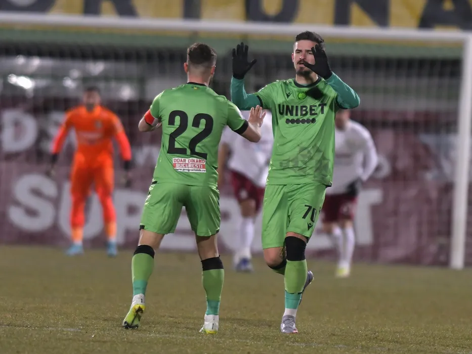Vladut Calin Morar se bucura dupa un gol marcat in meciul de fotbal dintre Rapid Bucuresti si Dinamo Bucuresti, contand pentru Play-out-ul Ligii 1 Casa Pariurilor, desfasurat pe Stadionul Orasenesc din Mioveni, duminica 13 martie 2022. © FOTO:Razvan Pasarica/SPORT PICTURES