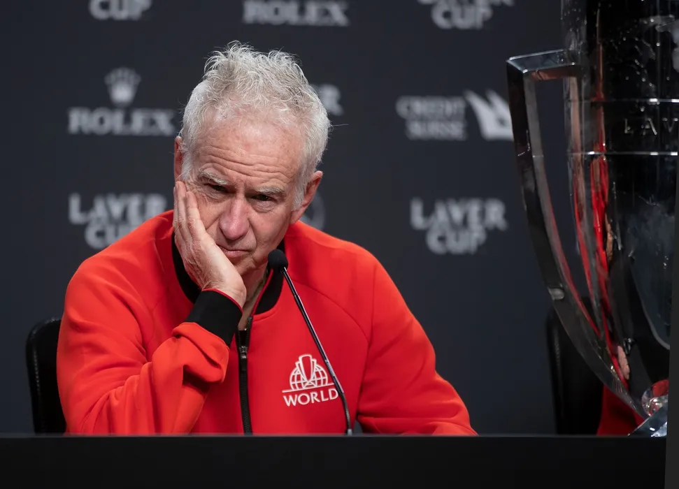 Laver Cup World Captain John McEnroe during the post match press conference after winning the 2022 Laver Cup in London at the O2 Arena beating Team Europe 13-8
