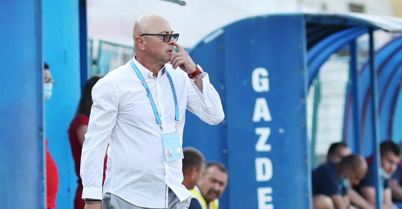 Leontin Grozavu, antrenorul echipei Sepsi OSK, urmareste meciul de fotbal contra formatiei Chindia Targoviste din etapa a II-a a Ligii 1, disputat pe stadionul Municipal din Buzau, luni, 26 iulie 2021. GEORGE FILIP / MEDIAFAX FOTO