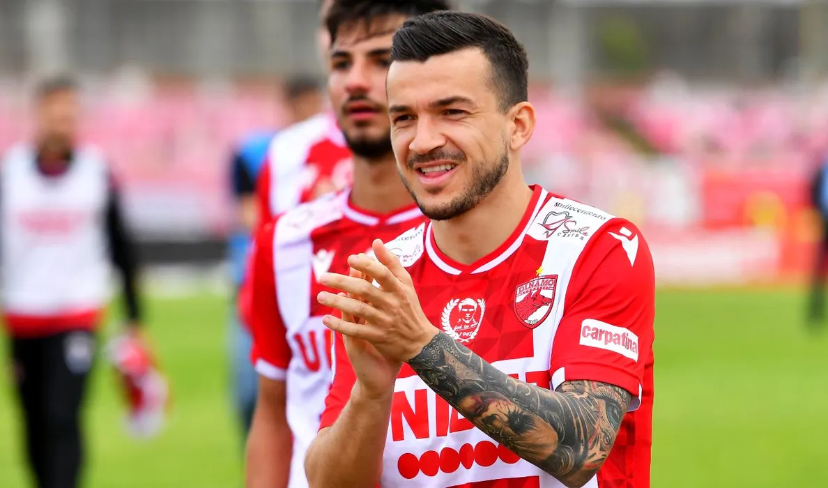 Cosmin Gabriel Matei saluta galeria dupa meciul de fotbal dintre Dinamo Bucuresti si Academica Clinceni, contand pentru Play-out-ul Ligii 1 Casa Pariurilor, desfasurat pe Stadionul Dinamo din Bucuresti, sambata 30 aprilie 2022. © FOTO:Razvan Pasarica/SPORT PICTURES