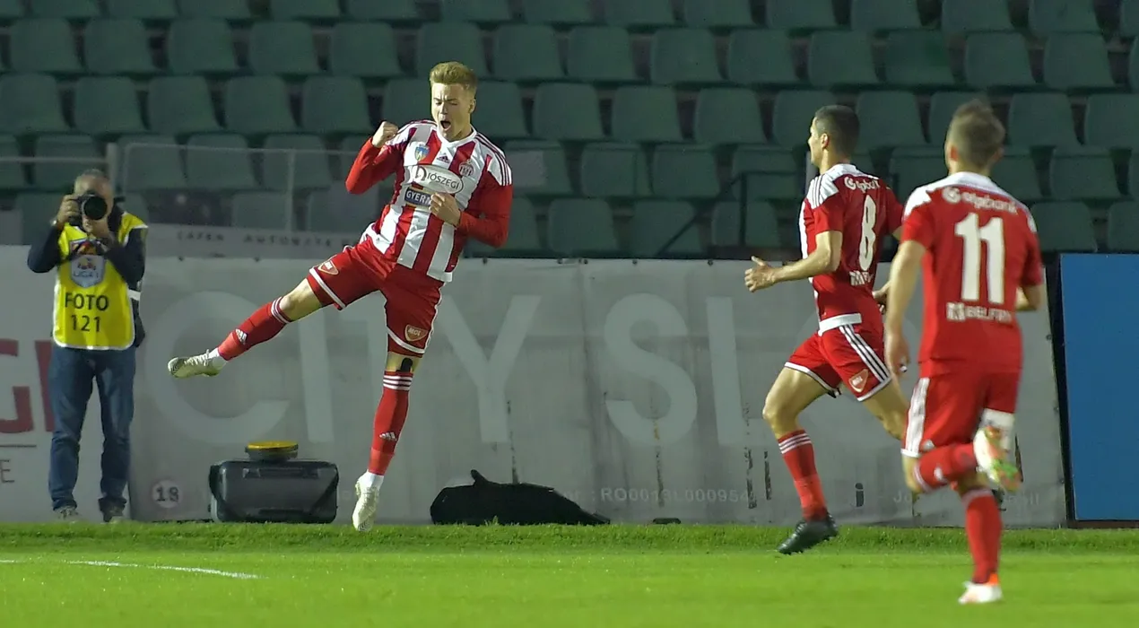Mihai Claudiu Adrian Petrila se bucura dupa un gol marcat in meciul de fotbal dintre Sepsi OSK Sfantu Gheorghe si Universitatea Craiova, contand pentru Play-off-ul Ligii 1 Casa Pariurilor, desfasurat fara spectatori pe Stadionul Municipal din Sfantu Gheorghe, miercuri 5 mai 2021. © FOTO:Razvan Pasarica/SPORT PICTURES