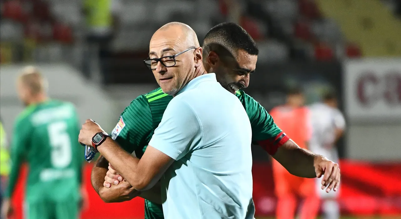 Leo Grozavu il felicita pe Rachid Bouhenna dupa meciul de fotbal dintre Astra Giurgiu si Sepsi OSK Sfantu Gheorghe, contand pentru Liga 1 Casa Pariurilor, desfasurat pe Stadionul Marin Anastasovici din Giurgiu, duminica 13 septembrie 2020. © FOTO:Razvan Pasarica/SPORT PICTURES