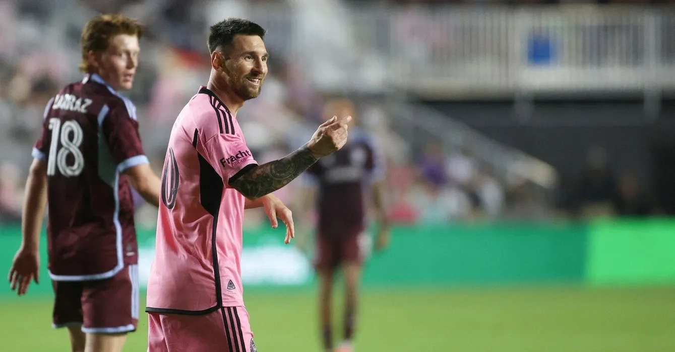 Inter Miami's Argentine forward #10 Lionel Messi gestures during the Major League Soccer (MLS) match between Inter Miami CF and Colorado Rapids at Chase stadium in Fort Lauderdale, Florida, April 6, 2024.,Image: 863016342, License: Rights-managed, Restrictions: , Model Release: no