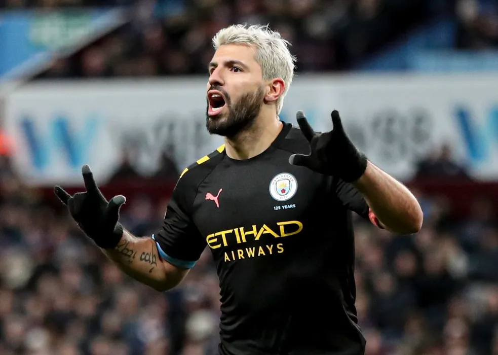 Sergio Aguero of Manchester City celebrate scoring the 5th goal
