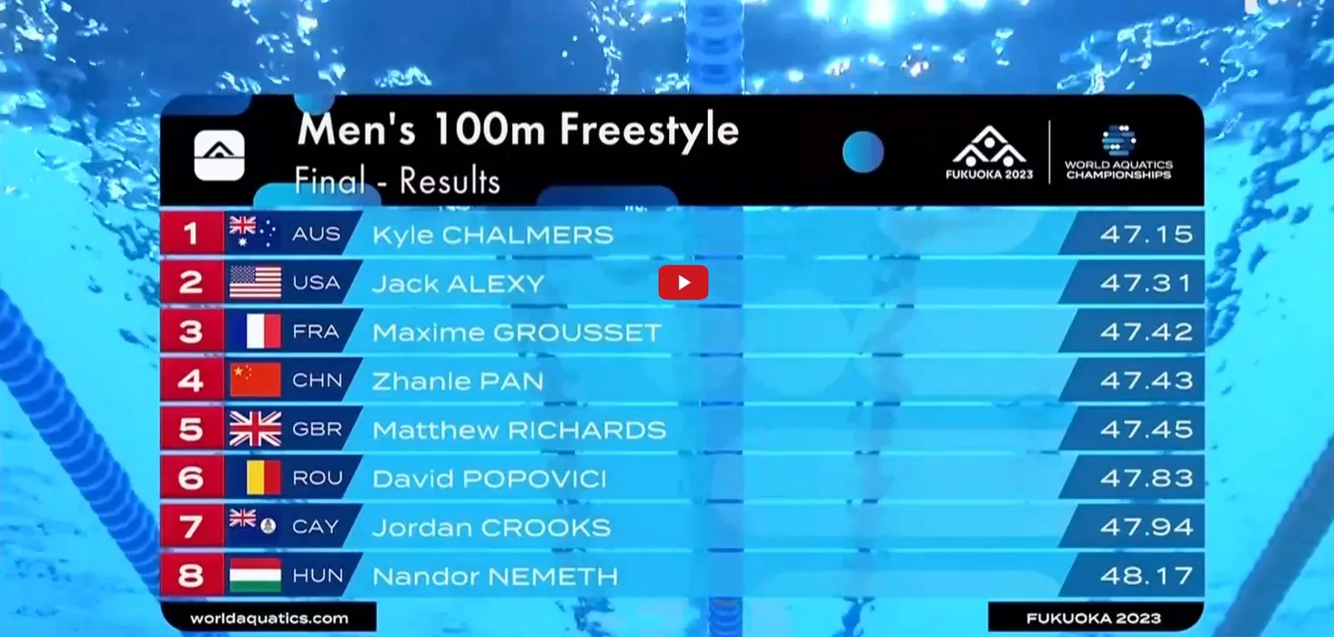 David Popovici a terminat pe locul 6 cursa de 100 de metri liber la Fukuoka