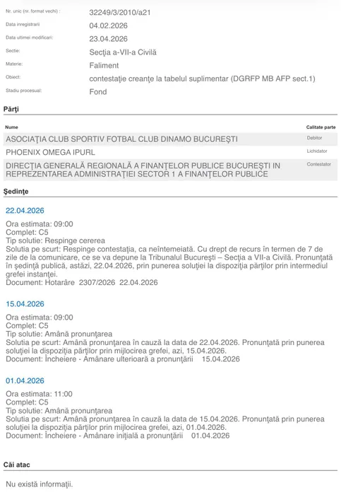 Lichidarea asociației „Dinamo-Badea” intră în linie dreaptă: judecătorul a respins contestații pentru creanțe în valoare de peste 10 milioane de euro!