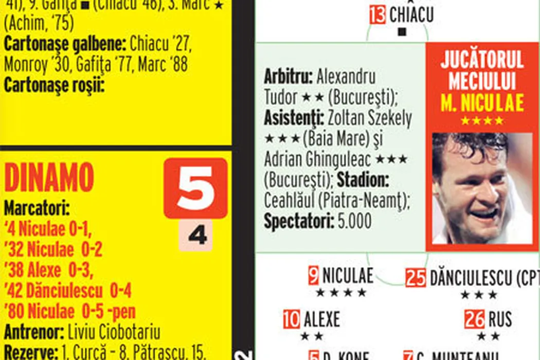 LIDER de rasă!** Ceahlăul – Dinamo 0-5! Niculae are 10 goluri în 10 etape