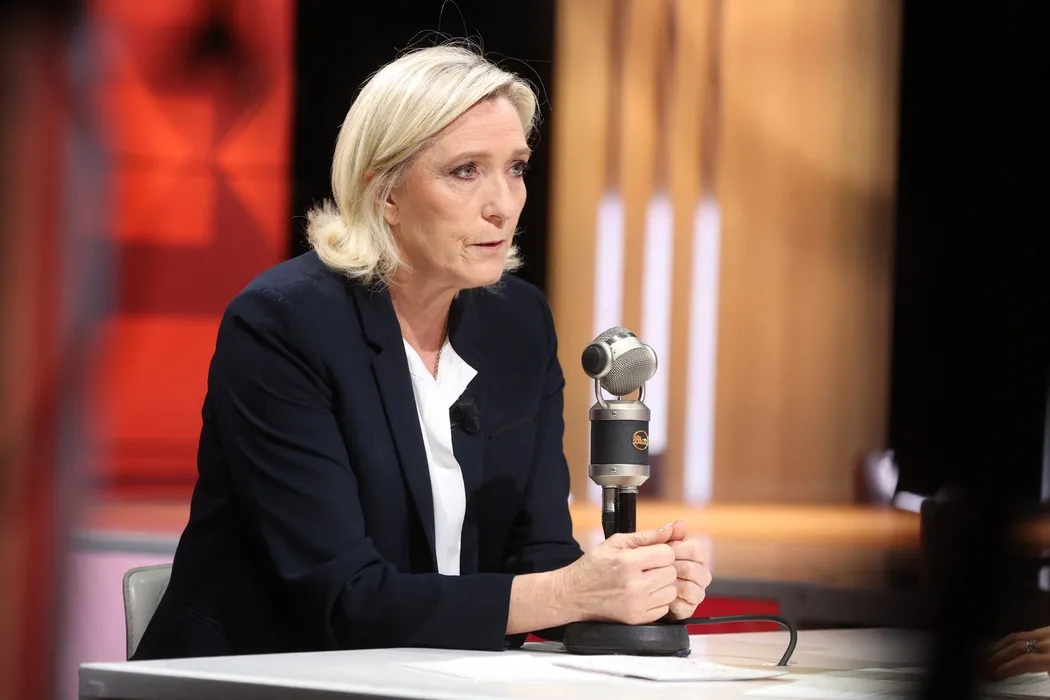 Marine Le Pen is interviewed by Apolline de Malherbe on RMC/BFMTV in Paris, France on July 04, 2024.