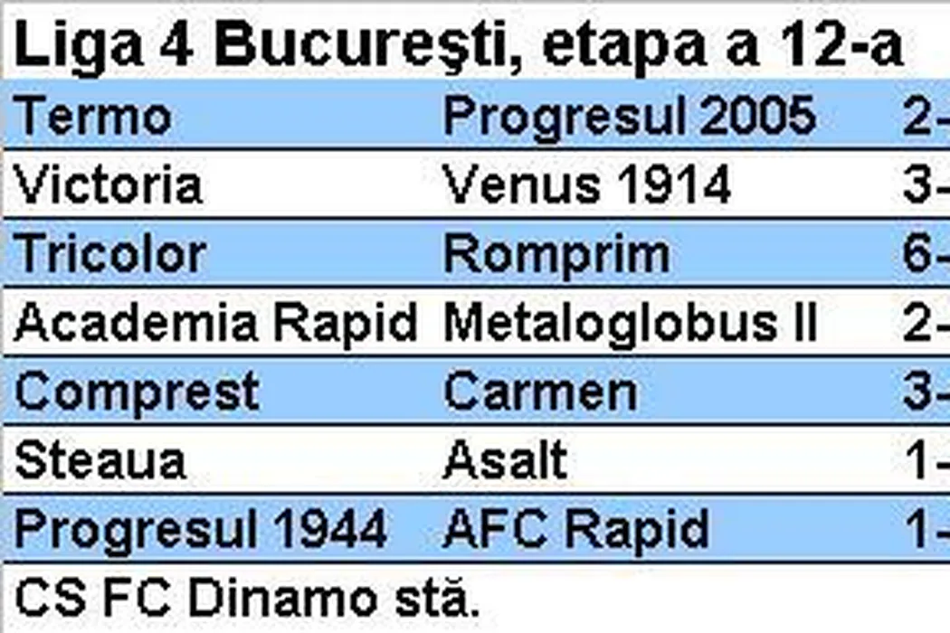Liga 4, etapa 12 | Academia Rapid ia avans, Steaua se împleticește acasă, Carmen face iar rocadă cu CS FC Dinamo, AFC Rapid se apropie la 3 puncte de play-off. De ce rămâne o miză clasarea între primele 4. Rezultate + clasament