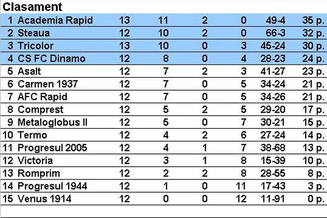 Liga 4, etapa a 13-a: Steaua și Academia Rapid, golaveraj 14-0 în deplasările la Carmen și Romprim. Dinamo – Badea urcă pe locul 4, AFC Rapid ajunge la a treia victorie consecutivă și suflă în ceafa „roș-albilor”. Rezultate + clasament