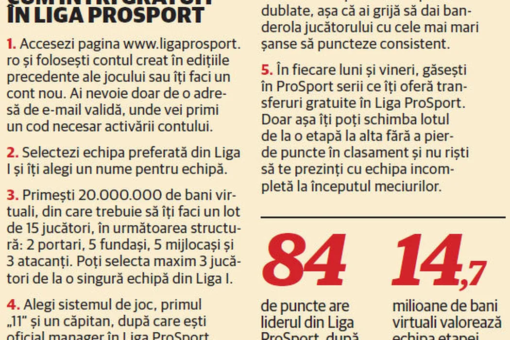 Liga Prosport, etapa a II-a!** Oricând te înscrii în Liga Prosport ai șanse la premiul cel mare