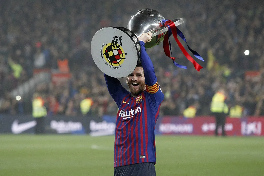 FC Barcelona's Leo Messi celebrates the victory in La Liga 2018/2019. On April 27,2019 in Barcelona, Spain. Photo by Acero/Alterphotos/ABACAPRESS.COM