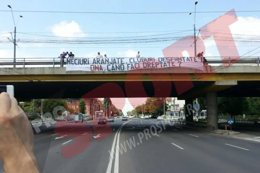 Lipsesc fanii rapidiști la barajul cu Chiajna? „Vrem în A, dar NU așa!” FOTO Bannerele afișate de suporterii giuleșteni
