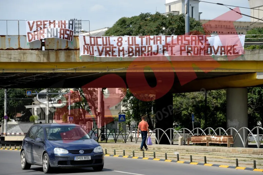 Lipsesc fanii rapidiști la barajul cu Chiajna? „Vrem în A, dar NU așa!” FOTO Bannerele afișate de suporterii giuleșteni