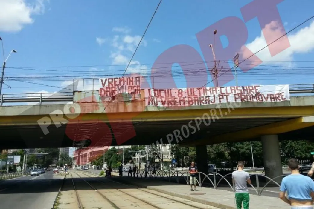 Lipsesc fanii rapidiști la barajul cu Chiajna? „Vrem în A, dar NU așa!” FOTO Bannerele afișate de suporterii giuleșteni