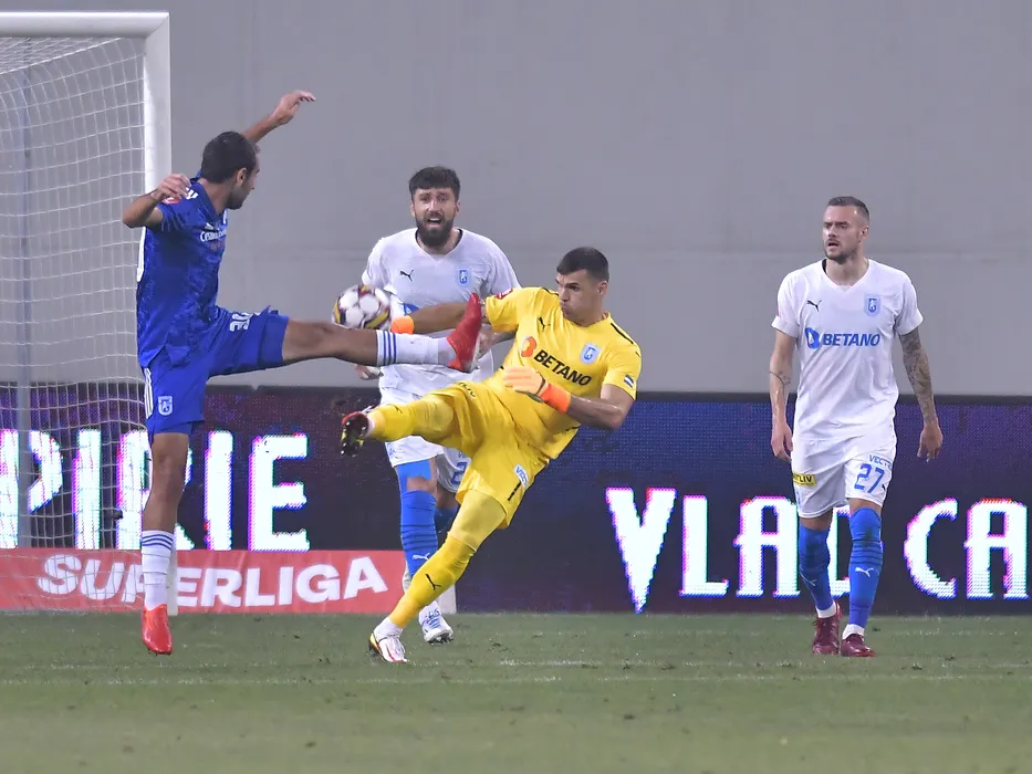 Paul Papp, David Beniamin Lazar si Ivan Martic in meciul de fotbal dintre FC U Craiova si Universitatea Craiova, contand pentru Superliga Superbet, desfasurat pe Stadionul Ion Oblemenco din Craiova, duminica 7 august 2022. © FOTO:Razvan Pasarica/SPORT PICTURES