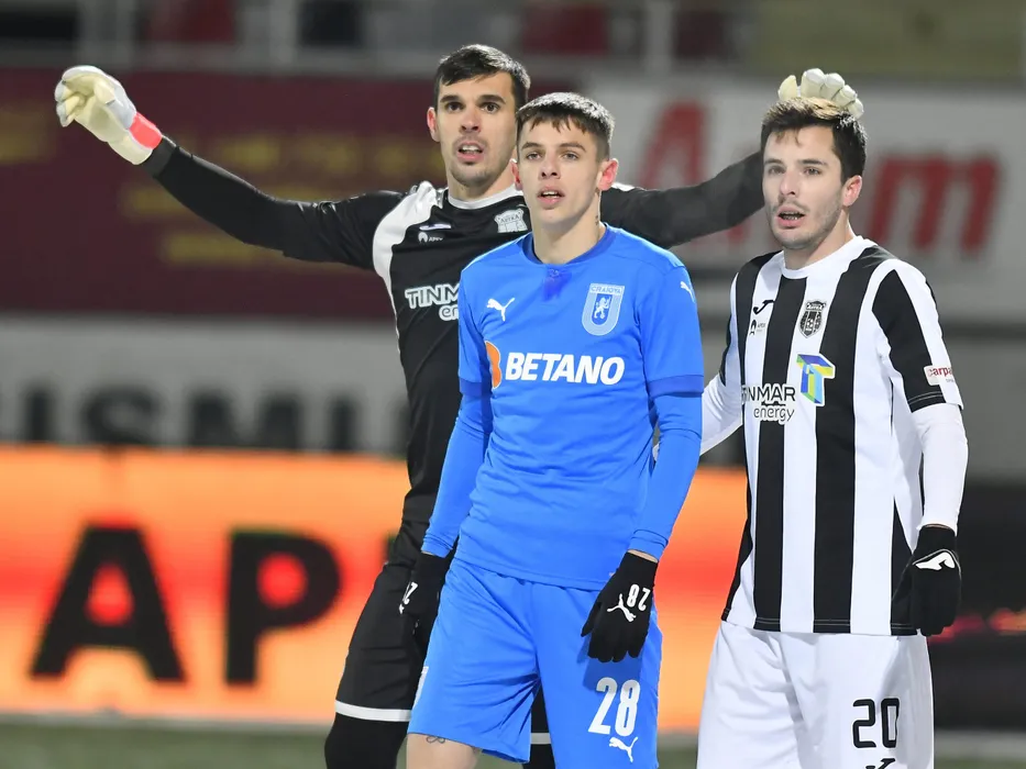 David Beniamin Lazar, Alexandru George Cimpanu si David Bruno Carneiro in meciul de fotbal dintre Astra Giurgiu si Universitatea Craiova, contand pentru Liga 1 Casa Pariurilor, desfasurat fara spectatori pe Stadionul Marin Anastasovici din Giurgiu, luni 18 ianuaie 2021. © FOTO:Razvan Pasarica/SPORT PICTURES
