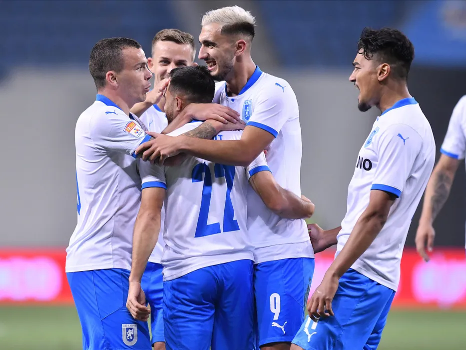 Bucurie craioveana cu Dan Nicolae Nistor, Nicusor Bancu, Andrei Virgil Ivan, Cristian Marian Barbut si Stefan Baiaram in meciul de fotbal dintre Universitatea Craiova si CSM Politehnica Iasi, contand pentru Liga 1 Casa Pariurilor, desfasurat fara spectatori pe Stadionul Ion Oblemenco din Craiova, vineri 2 octombrie 2020. © FOTO:Razvan Pasarica/SPORT PICTURES