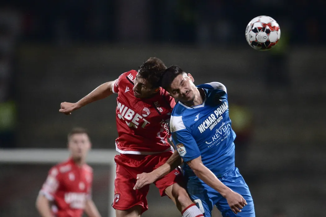 Ioan Filip (S), de la Dinamo Bucuresti, lupta pentru balon cu Alexandru Buziuc (D), de la Academica Clinceni, in timpul meciului de fotbal din sferturile de finala ale Cupei Romaniei, disputat la stadionul Stefan Cel Mare din Bucuresti, marti, 3 martie 2020. ALEXANDRU DOBRE / MEDIAFAX FOTO