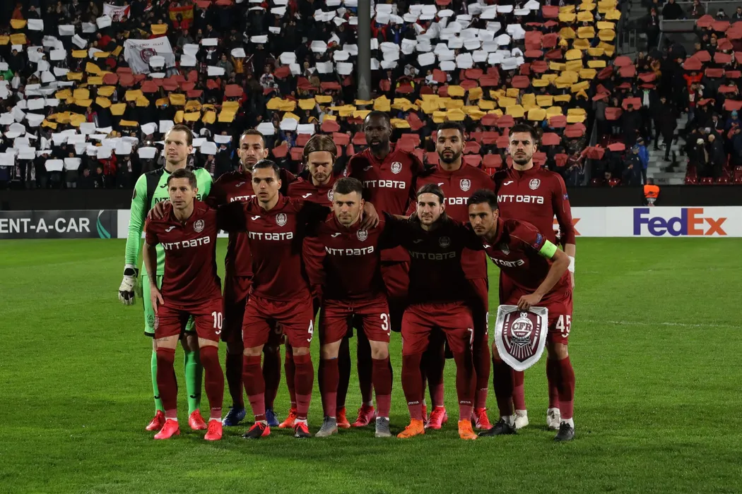 Jucatorii formatiei CFR Cluj pozeaza inainte de inceperea meciului de fotbal contra echipei Sevilla, din 16-imile Europa League, mansa tur, disputat pe stadionul Dr. Constantin Radulescu din Cluj-Napoca, joi, 20 februarie 2020. DAN HORIA TAUTAN / MEDIAFAX FOTO