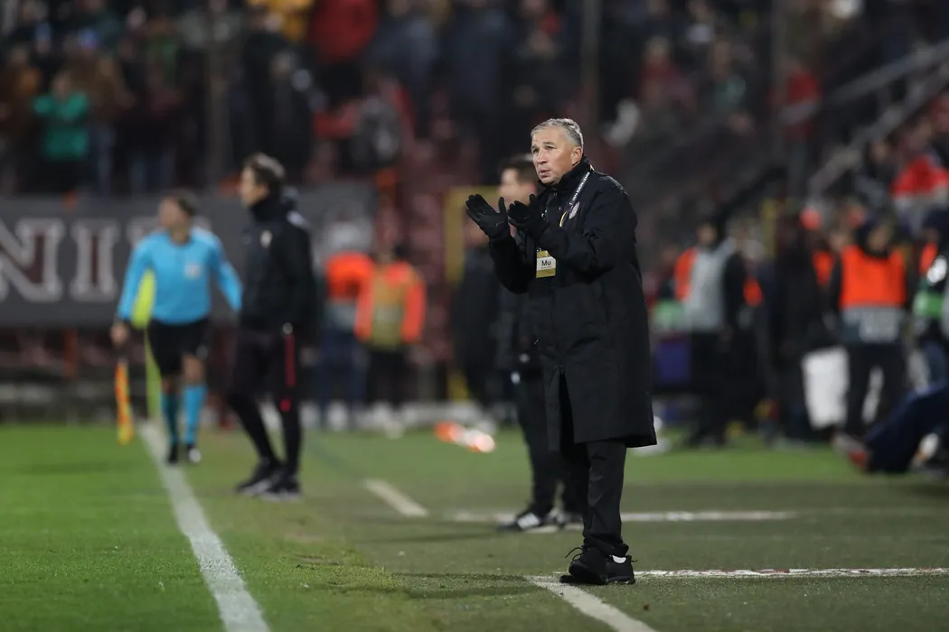 Dan Petrescu, antrenorul echipei CFR Cluj, urmareste meciul de fotbal contra echipei Sevilla, din 16-imile Europa League, manșa tur, disputat pe stadionul Dr. Constantin Radulescu din Cluj-Napoca, joi, 20 februarie 2020. SEBASTIAN TATARU / MEDIAFAX FOTO