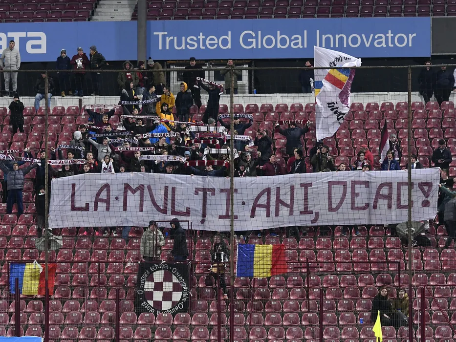 Galeria ceferista cu un mesaj de La multi ani adresat lui Ciprian Deac in meciul de fotbal dintre CFR Cluj si FC Viitorul, contand pentru Liga 1 Casa Pariurilor, disputat pe Stadionul Dr. Constantin Radulescu din Cluj Napoca, vineri 14 februarie 2019. © FOTO:Razvan Pasarica/SPORT PICTURES