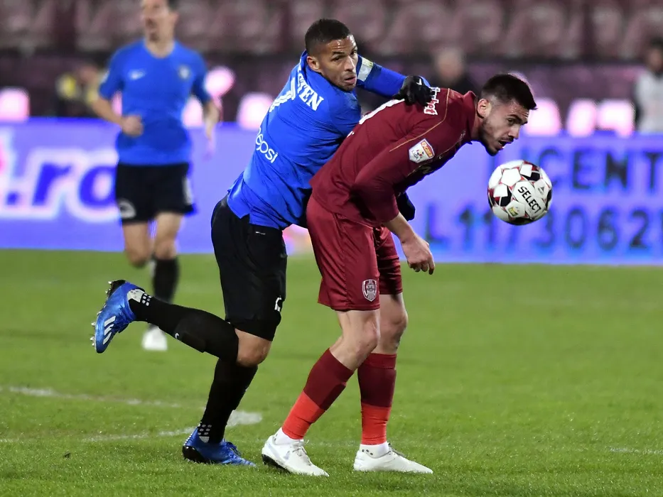 Rivaldinho Vitor Ferreira Mosca si Andrei Burca in meciul de fotbal dintre CFR Cluj si FC Viitorul, contand pentru Liga 1 Casa Pariurilor, disputat pe Stadionul Dr. Constantin Radulescu din Cluj Napoca, vineri 14 februarie 2019. © FOTO:Razvan Pasarica/SPORT PICTURES
