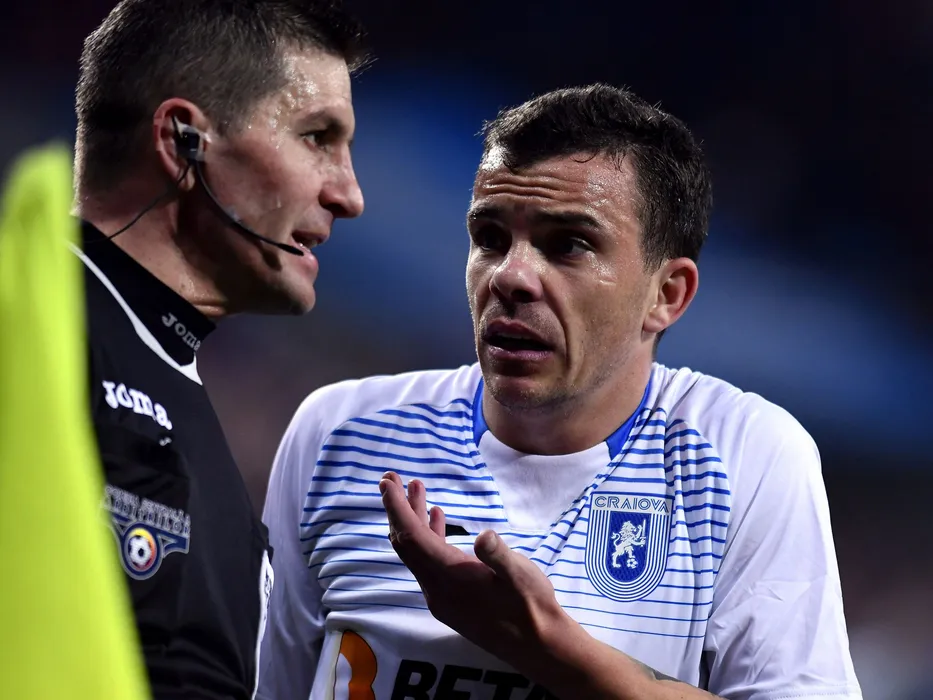 Dan Nistor alaturi de un arbitru asistent in meciul de fotbal dintre Universitatea Craiova si CFR Cluj, contand pentru Liga 1 Casa Pariurilor, disputat pe Stadionul Ion Oblemenco din Craiova, duminica 23 februarie 2019. © FOTO:Razvan Pasarica/SPORT PICTURES