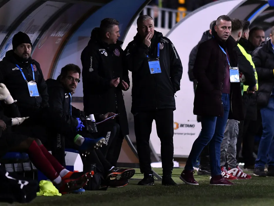 Alin Minteuan,Dan Petrescu si Cristian Panin in meciul de fotbal dintre Universitatea Craiova si CFR Cluj, contand pentru Liga 1 Casa Pariurilor, disputat pe Stadionul Ion Oblemenco din Craiova, duminica 23 februarie 2019. © FOTO:Razvan Pasarica/SPORT PICTURES