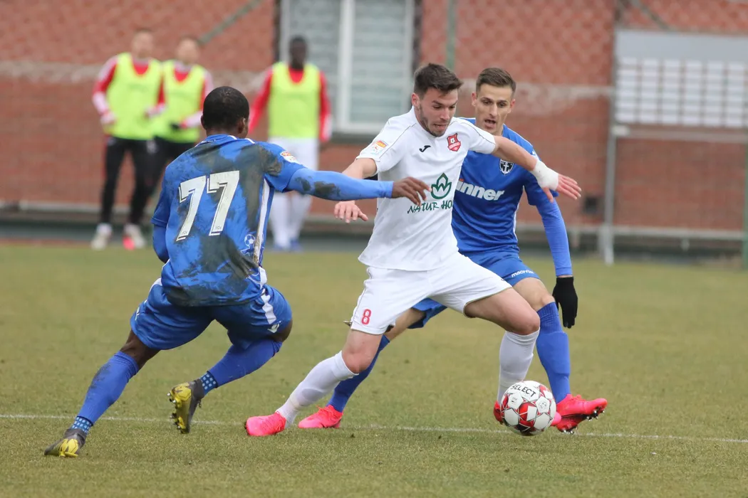 Andrei Codrea (C), de la AFC Hermannstadt, suteaza in timpul meciului de fotbal contra echipei FC Voluntari din etapa 26 a Ligii 1, disputat pe stadionul Anghel Iordanescu din Voluntari, sambata, 22 februarie 2020GEORGE FILIP / MEDIAFAX FOTO