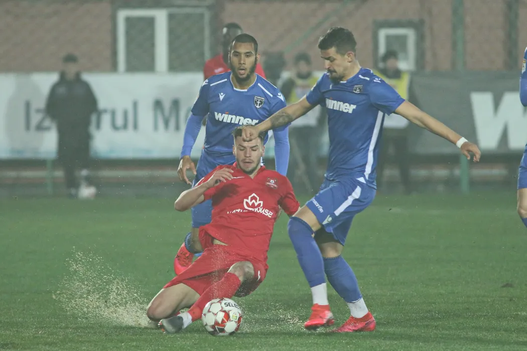 Vladut Morar (D), de la FC Voluntari, suteaza in timpul meciului de fotbal contra echipei AFC Hermannstadt, din etapa a II-a a play-out-ului Ligii 1, disputat pe stadionul Anghel Iordanescu din Voluntari, luni, 9 martie 2020. GEORGE FILIP / MEDIAFAX FOTO