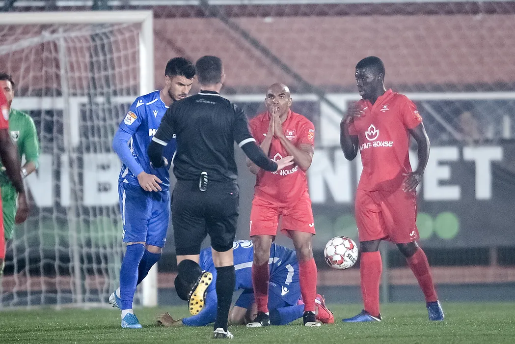 Meciul de fotbal dintre FC Voluntari (echipament albastru) si AFC Hermannstadt (echipament rosu), din etapa a II-a a play-out-ului Ligii 1, disputat pe stadionul Anghel Iordanescu din Voluntari, luni, 9 martie 2020. ALEXANDRU DOBRE / MEDIAFAX FOTO