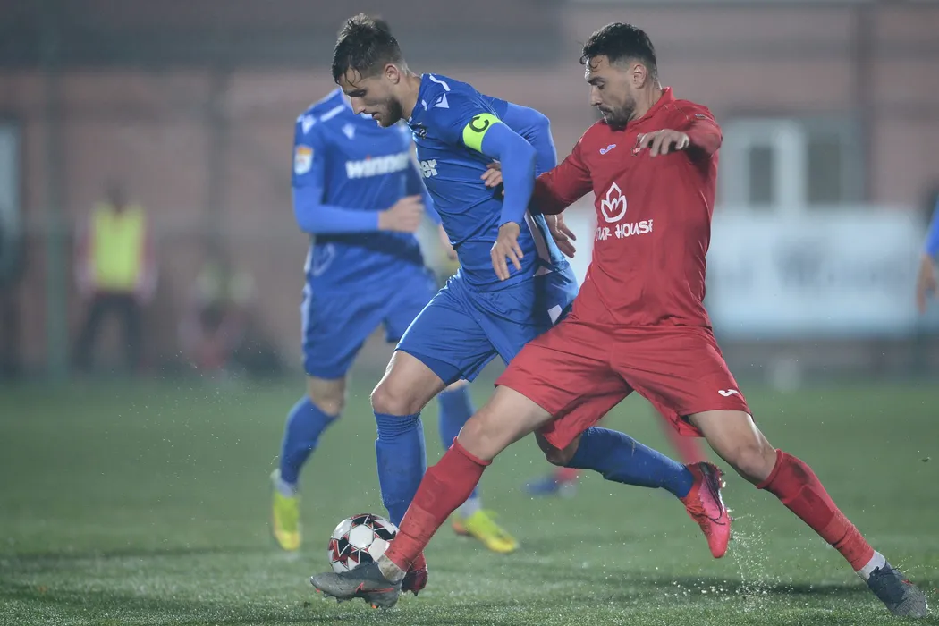Cristian Capatana (S), de la FC Voluntari, suteaza in timpul meciului de fotbal contra echipei AFC Hermannstadt, din etapa a II-a a play-out-ului Ligii 1, disputat pe stadionul Anghel Iordanescu din Voluntari, luni, 9 martie 2020. ALEXANDRU DOBRE / MEDIAFAX FOTO