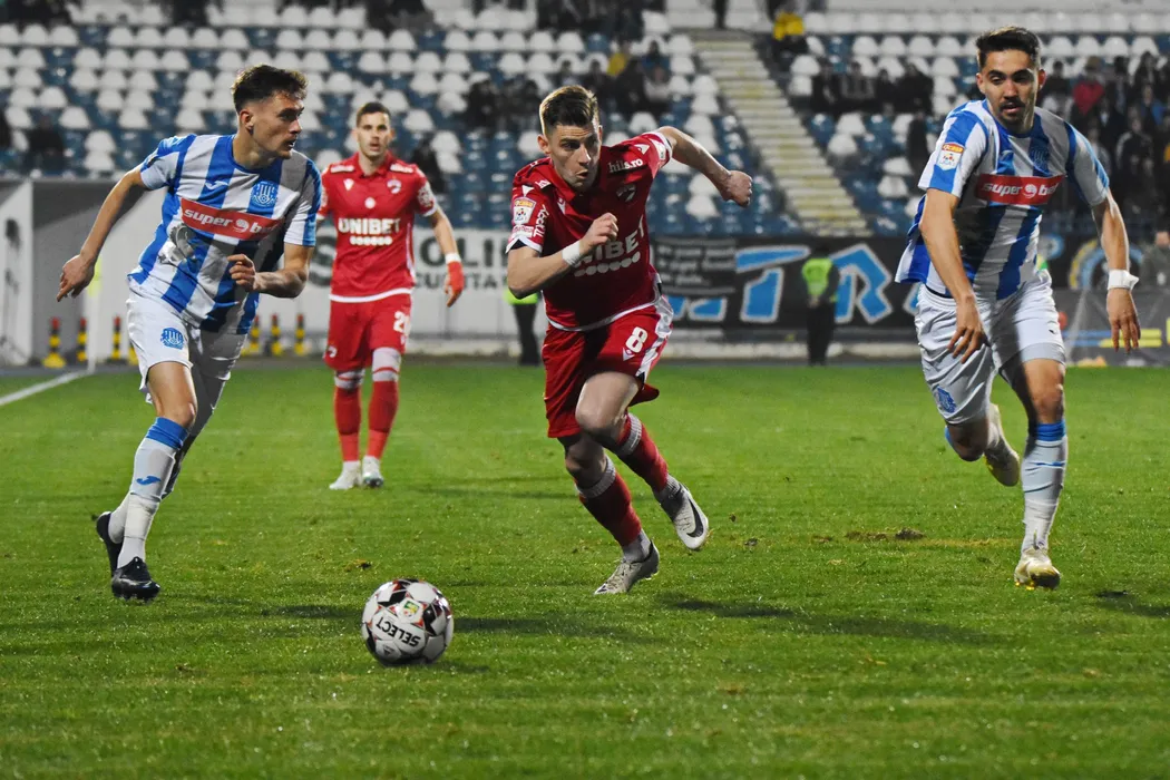 Valentin Lazar (C), de la Dinamo, suteaza in timpul meciului de fotbal contra echipei CSM Politehnica Iasi din etapa a II-a a play-out-ului Ligii 1, disputat pe stadionul Emil Alexandrescu din Iasi, sambata, 7 martie 2020. DRAGOS PASCANEANU / MEDIAFAX FOTO