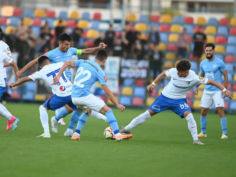 Ricardo Jose Veiga Varzim Miranda si Darius Constantin Grosu in meciul de fotbal dintre FC Voluntari si Farul Constanta, din cadrul Cupei Romaniei Betano, desfasurat pe Stadionul Anghel Iordanescu din Voluntari, marti 26 septembrie 2023. © FOTO:Razvan Pasarica/SPORT PICTURES