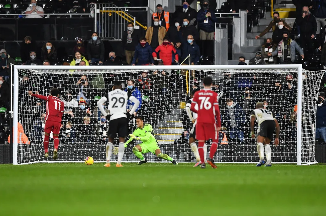 Mohamed Salah of Liverpool scores a penalty in the second half to make it 1-1