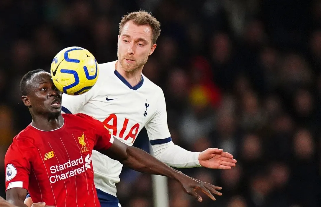 Sadio Mane of Liverpool battles with Christian Eriksen of Tottenham Hotspur