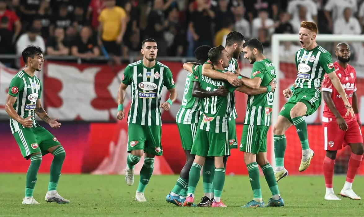 Bucurie a fotbalistilor de la Sepsi dupa un gol marcat cu Bogdan Florin Otelita, Denis Ciobotariu, Marius Stefanescu,Ion Gheorghe si Andres Mihai Dumitrescu in meciul de fotbal dintre Dinamo Bucuresti si Sepsi OSK Sfantu Gheorghe, din cadrul Superligii Superbet, desfasurat pe Stadionul National Arcul de Triumf din Bucuresti, luni 31 iulie 2023. © FOTO:Razvan Pasarica/SPORT PICTURES