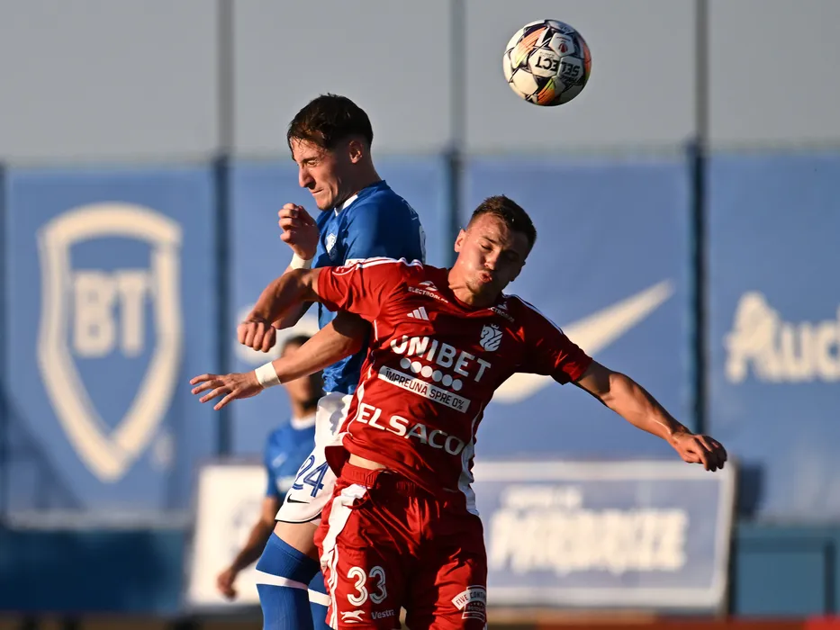 Constantin Grameni si Eugen Gabriel David in meciul de fotbal dintre Farul Constanta si FC Botosani, contand pentru Superliga Superbet, desfasurat pe Stadionul central al Academiei Gheorghe Hagi din Ovidiu, duminica 28 iulie 2024. © FOTO:Razvan Pasarica/SPORT PICTURES