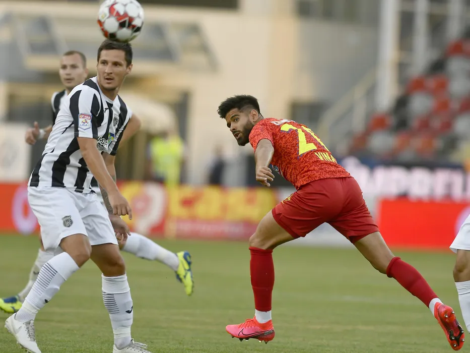 Ljubjan Crepulja si Ionut Vina in meciul de fotbal dintre Astra Giurgiu si FCSB, contand pentru play-off-ul Ligii 1 Casa Pariurilor, disputat fara spectatori pe Stadionul Marin Anastasovici din Giurgiu, luni 29 iunie 2020. © FOTO:Razvan Pasarica/SPORT PICTURES