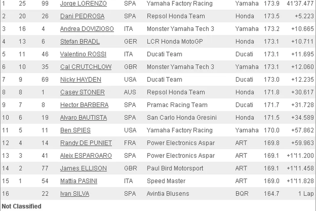 Lorenzo a câștigat acasă la Rossi! **Jorge se distanțează față de Pedrosa și Stoner, la general
